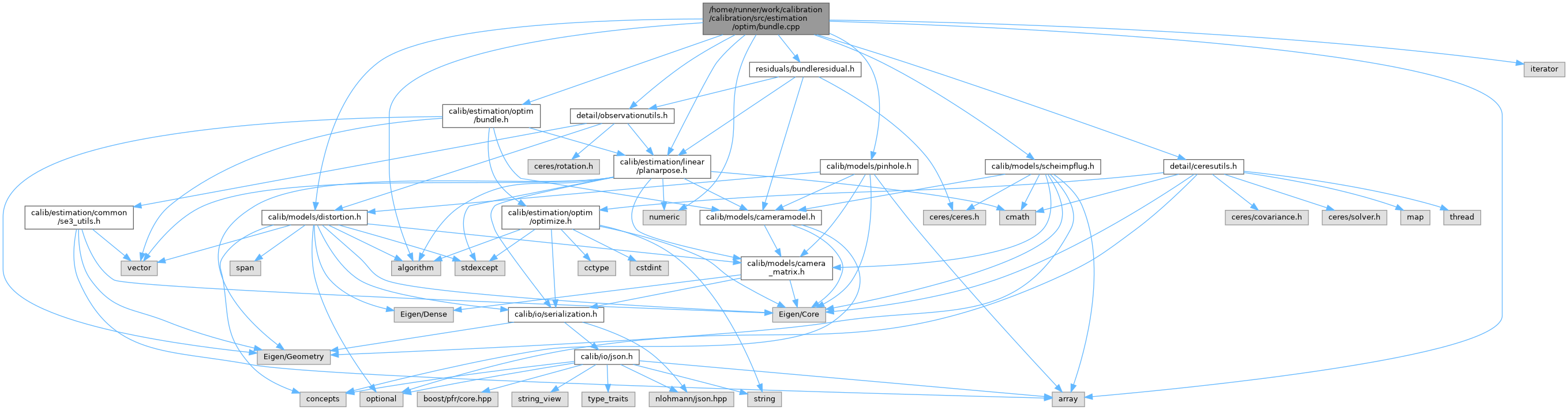 | BundleResult< CameraT > | calib::optimize_bundle (const std::vector< BundleObservation > &observations, const std::vector< CameraT > &initial_cameras, const std::vector< Eigen::Isometry3d > &init_g_se3_c, const Eigen::Isometry3d &init_b_se3_t, const BundleOptions &opts) |
