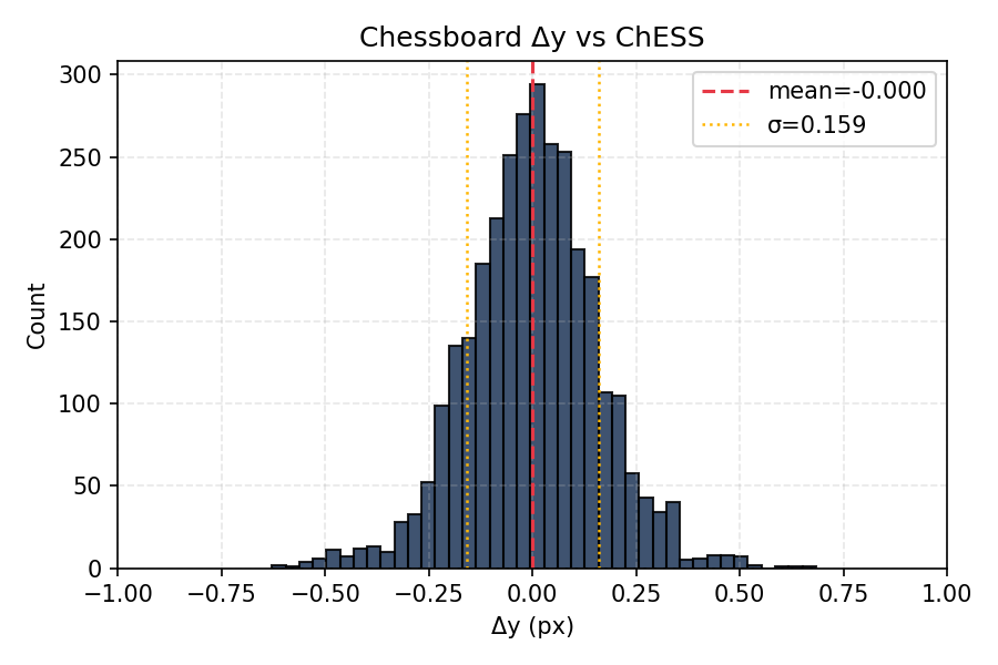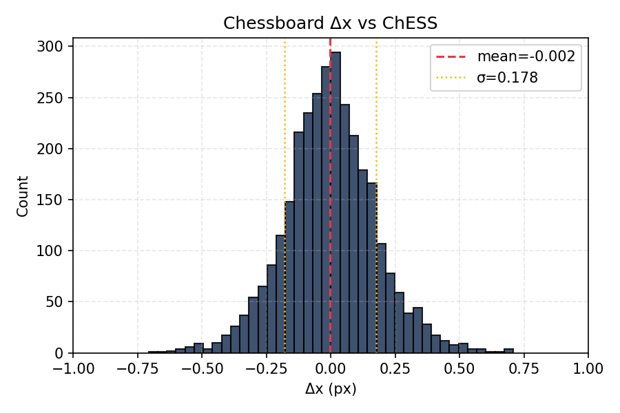 - Chessboard vs ChESS: 0.21 pix